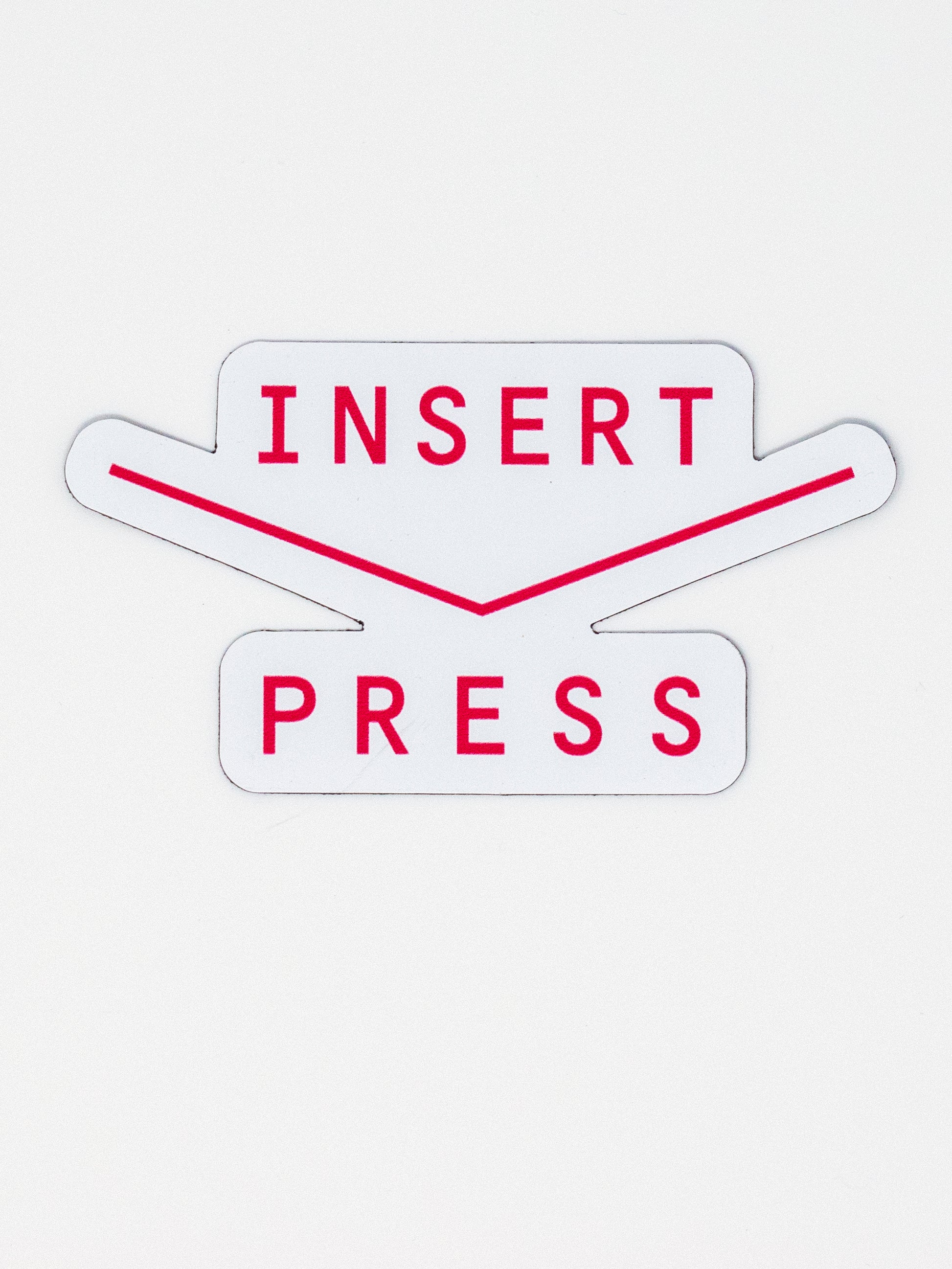 Die cut magnet with classic Insert Press logo, 3" x 1.63".